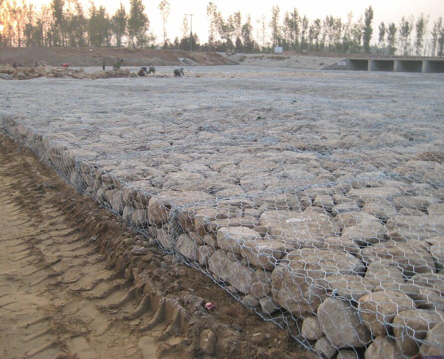 格賓網(wǎng)墊是由抗腐耐磨高強的低碳鍍鋅鋼絲編織成雙絞六邊形的金屬網(wǎng)箱,根據(jù)工程設計要求組裝并裝入塊石等填充料的一項工程技術,這種蜂巢型結(jié)構(gòu),最能符合力學的原理,是一個同性質(zhì)的巨大塊狀結(jié)構(gòu).體,具有承受張力的功能,并可吸收未知的壓力.這項技術能較好地實現(xiàn)工程結(jié)構(gòu)與生態(tài)環(huán)境的有機結(jié)合,為保護河床,治理滑坡,防治泥石流災害,防止落石兼顧環(huán)境保護的首選結(jié)構(gòu)形式.