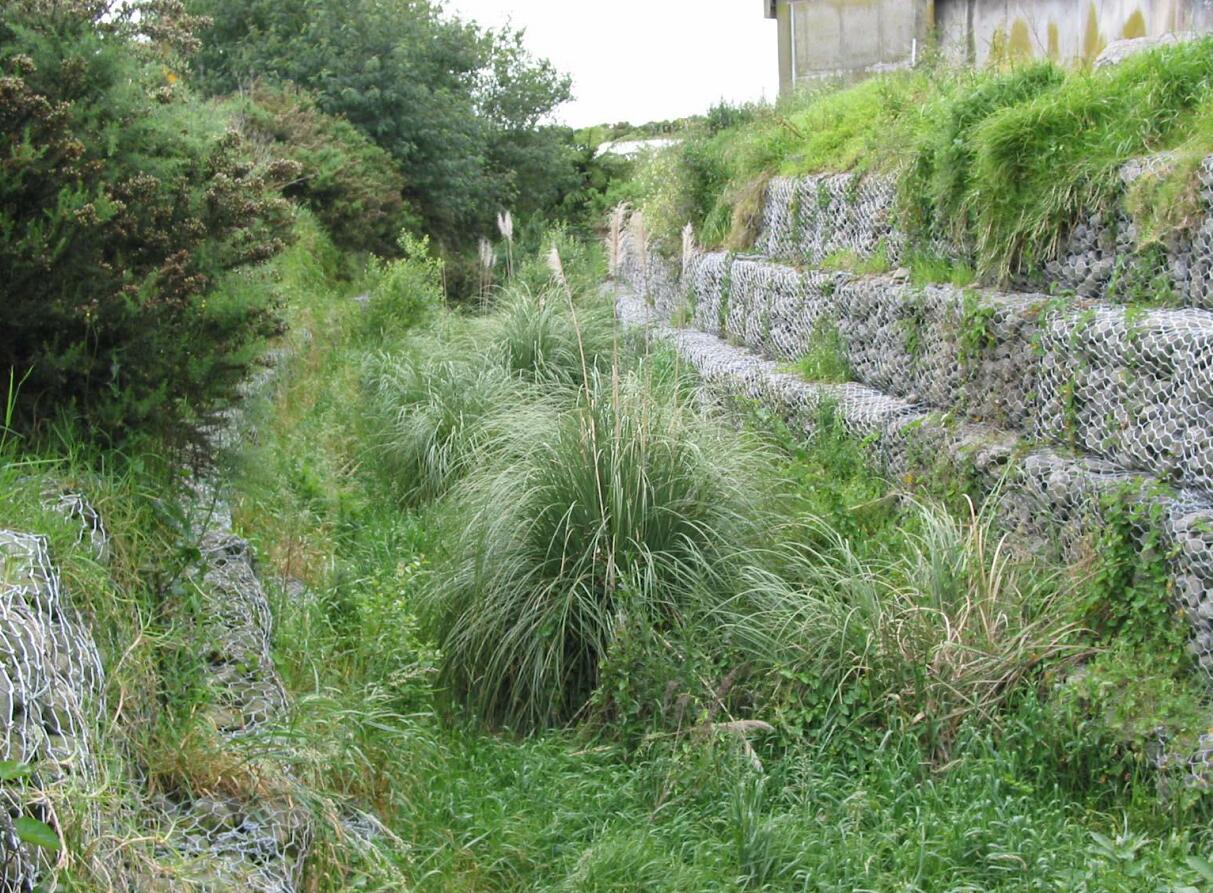 積,在降雨條件下渣場(chǎng)內(nèi)部會(huì)聚存較多的雨水,若泄水通道不暢而存在較大的壓力造成擋墻破壞.生態(tài)格賓擋墻由于具有一定的孔隙率(20%-30%),雨水可以自由滲出,可以免去其他類型擋墻排水孔易被堵塞的麻煩,在不設(shè)置泄水孔或泄水孔遭泥沙堵塞的情況下不造成墻體破壞生態(tài)格賓擋墻是一種生態(tài)防護(hù)構(gòu)造,其根柢作業(yè)單元為填石網(wǎng)箱,植物能夠運(yùn)用格賓內(nèi)填石空位成長,也能夠通過預(yù)埋藤蔓枝條等抵達(dá)美化作用,與天然和諧一同.對(duì)比于其他支擋構(gòu)造,格賓擋墻有其明顯的利益:透排水性超卓,坡面規(guī)整、俊美;柔性構(gòu)造,貼地性佳,承載力需求低;耐久性好,高鍍鋅抗腐蝕;機(jī)械編織成網(wǎng),出產(chǎn)活絡(luò),運(yùn)送儲(chǔ)存便利,不需求十分規(guī)則的石料,能夠因地制宜.生態(tài)格賓擋墻已被廣泛運(yùn)用,成為國內(nèi)外生態(tài)工程中的一個(gè)重要構(gòu)成.