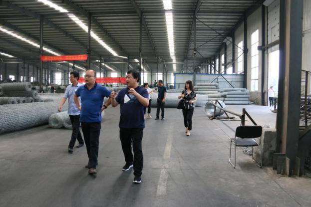 在公司車間,尚總向?qū)O主任一行詳細(xì)介紹了石籠網(wǎng)的生產(chǎn)工藝流程,公司對原有的生產(chǎn)工藝進(jìn)行改進(jìn)創(chuàng)新,以及石籠網(wǎng)在防洪防汛應(yīng)用中起到的河道邊坡防護(hù)防沖刷作用.隨后,孫主任又詢問了關(guān)于石籠網(wǎng)編織過程中的一些問題,并對公司科技創(chuàng)新項目取得的成就和投入力度表示贊賞,對公司以后的發(fā)展充滿信心和期望,并鼓勵我司積極參與其他的對外交流活動,孫主任表示,對外交流中心也會加強(qiáng)對項目的篩選及對優(yōu)質(zhì)項目的扶持,加強(qiáng)優(yōu)秀企業(yè)對外品牌輸出力度,助力企業(yè)朝更好的方向發(fā)展.