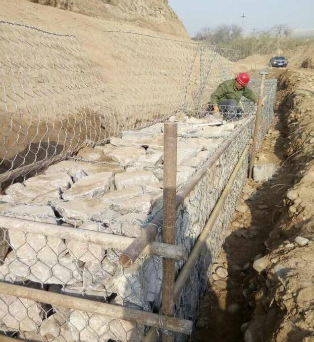 石籠護(hù)坡網(wǎng)石籠護(hù)坡的結(jié)構(gòu) 昊昌石籠網(wǎng)是由高抗腐蝕性、高強(qiáng)度、具有延展性的低碳鋼絲或者包覆PVC的以上鋼絲,使用專業(yè)機(jī)械雙絞擰花編織而成,使用該網(wǎng)制作成的箱型結(jié)構(gòu)就是石籠.
